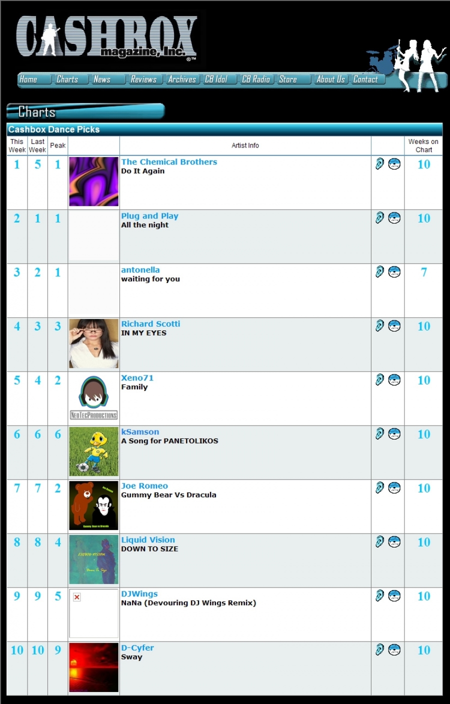 Η συγκεκριμένη Ιστοσελίδα ανήκει στο διεθνές μουσικό περιοδικό "CashBox" και η επιλογή των τραγουδιών γίνεται με κριτήριο την ποιότητα της σύνθεσης, ποιότητα εγγραφής, ποιότητα εκτέλεσης , όπως θα διαπιστώσετε από τα κείμενα που συνοδεύουν τα charts.