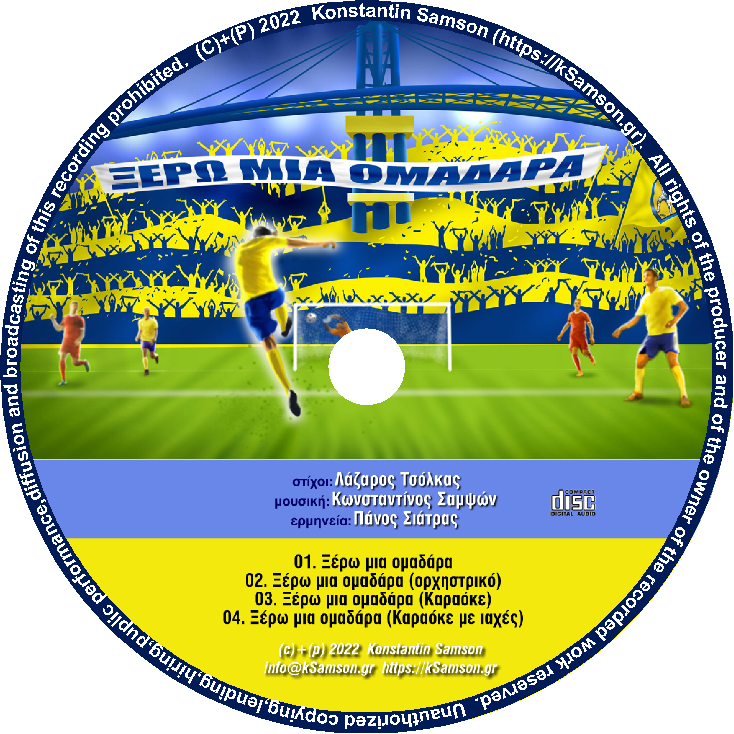 ΠΡΟΣΟΧΗ: Οι μουσικές συνθέσεις δεν διατίθεται για εμπορική χρήση ή άλλου είδους εκμετάλευση χωρίς την άδεια του Κωνσταντίνου Σαμψών. Σε περίπτωση χρήσης κάποιας μουσικής σύνθεσης σε ερασιτεχνικό βίντεο, αρκεί να αναφέρονται οι συντελεστές αυτής (τίτλος σύνθεσης, ερμηνευτής, συνθέτης, στιχουργός) στα στοιχεία των δημιουργών αυτού του βίντεο. Απαραιτήτως στην περίπτωση αυτή θα πρέπει να εμφανίζεται και ο τίτλος της παρούσας ιστοσελίδας (δηλ https://kSamson.gr)
