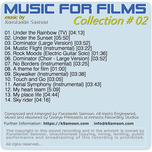Ενα σύνολο μουσικών συνθέσεων του Κωνσταντίνου Σαμψών, κάποιες απο τις οποίες έχουν ήδη κυκλοφορήσει σε εκδοθέντα έργα και κάποιες που δημοσιεύονται για πρώτη φορά, κατάλληλων για επένδυση σε βίντεο, ταινίες κλπ.