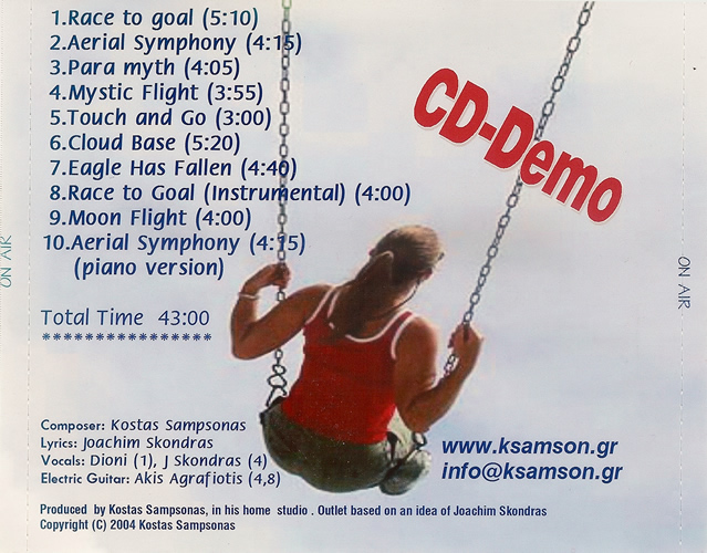 Το πρώτο ολοκληρωμένο δείγμα "On Air" σε μορφή Demo με 12 μουσικά θέματα (10 Ορχηστρικά και 2 Τραγούδια) . Ο σκοπός της έκδοσης αυτής ήταν να το κάνει γνωστό σε φορείς και διοργανωτές του 8ου Πανευρωπαικού Πρωταθλήματος Αλεξιπτώτου Πλαγιάς όπου και η επόμενη έκδοση το επένδυσε μουσικά.