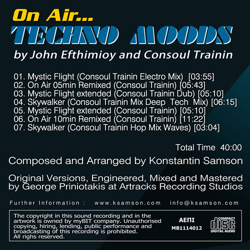 Ο DJ Γιάννης Ευθυμίου και οι Consoul Trainin διασκεύσαν με Techno διάθεση, συνθέσεις του Κωνσταντίνου Σαμψών απο το μουσικό έργο On Air... myths and tales, δινοντάς την ευκαιρία στον ακροατή να απολαύσει αυτές τις μουσικές δημιουργίες κάτω απο μια διαφορετική αισθητική αντίληψη.