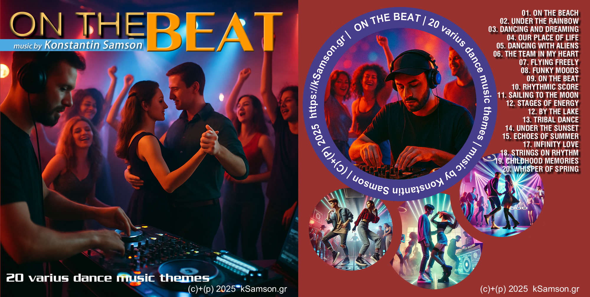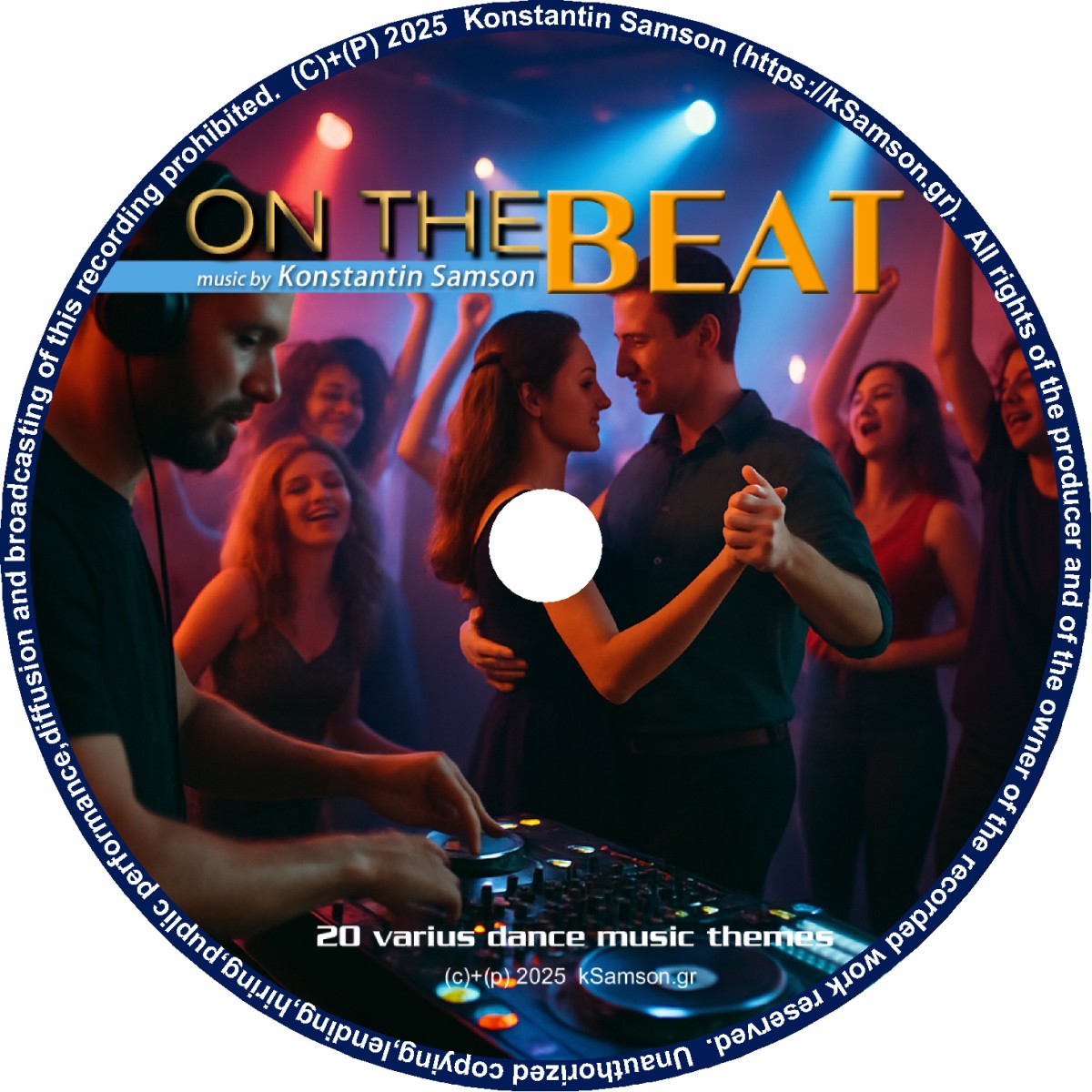 Με αφετηρία ποικίλα ρυθμικά σχήματα, ο Κωνσταντίνος Σαμψών δημιουργεί στο έργο «ON THE BEAT» ένα ταξίδι ανάμεσα στον παλμό και τη σιωπή, ανάμεσα στη χορευτική ένταση και την ακουστική ευαισθησία. Οι συνθέσεις του ισορροπούν με μαεστρία ανάμεσα στο μοντέρνο και το κλασικό, πλέκοντας μια πανδαισία ηχοχρωμάτων που μαγεύει, συγκινεί και παρασύρει τον ακροατή.