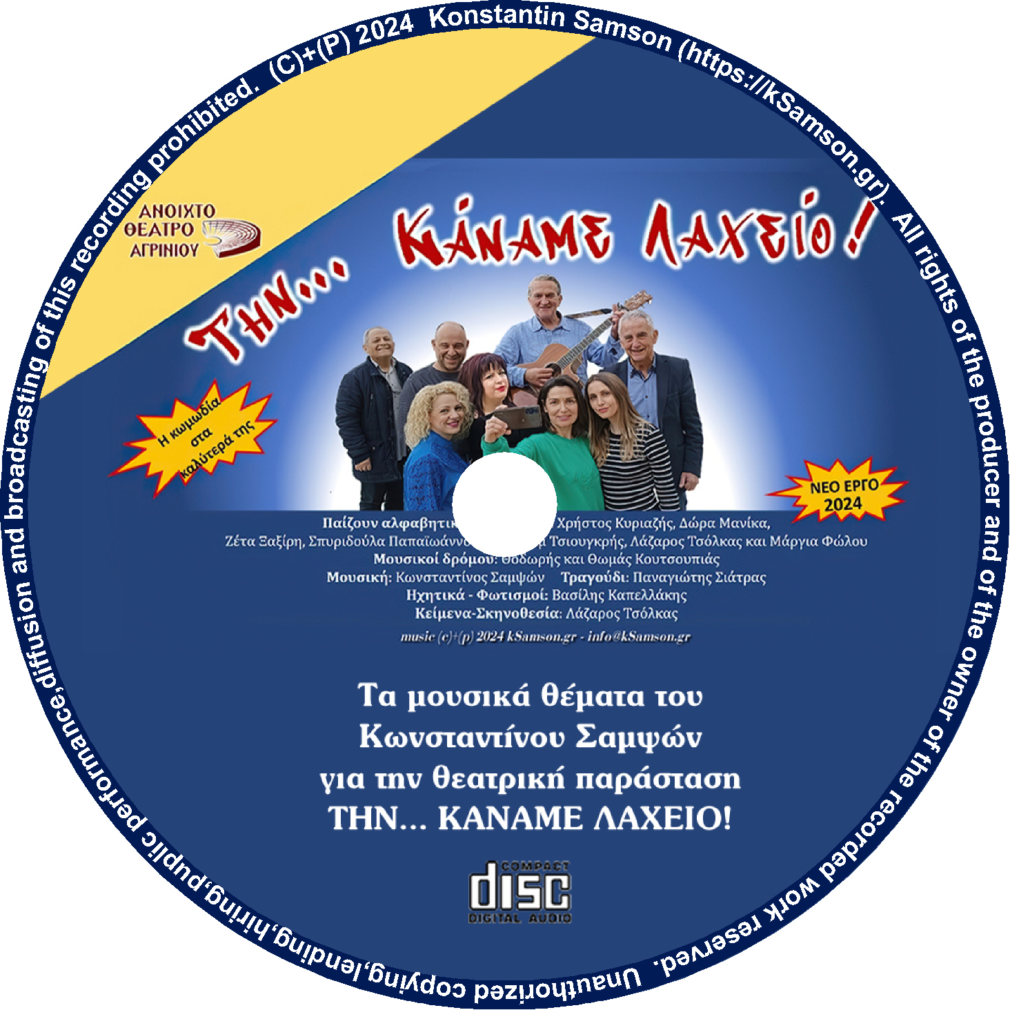 ΠΡΟΣΟΧΗ: Οι μουσικές συνθέσεις δεν διατίθεται για εμπορική χρήση ή άλλου είδους εκμετάλευση χωρίς την άδεια του Κωνσταντίνου Σαμψών. Σε περίπτωση χρήσης κάποιας μουσικής σύνθεσης σε ερασιτεχνικό βίντεο, αρκεί να αναφέρονται οι συντελεστές αυτής (τίτλος σύνθεσης, ερμηνευτής, συνθέτης, στιχουργός) στα στοιχεία των δημιουργών αυτού του βίντεο. Απαραιτήτως στην περίπτωση αυτή θα πρέπει να εμφανίζεται και ο τίτλος της παρούσας ιστοσελίδας (δηλ https://kSamson.gr)