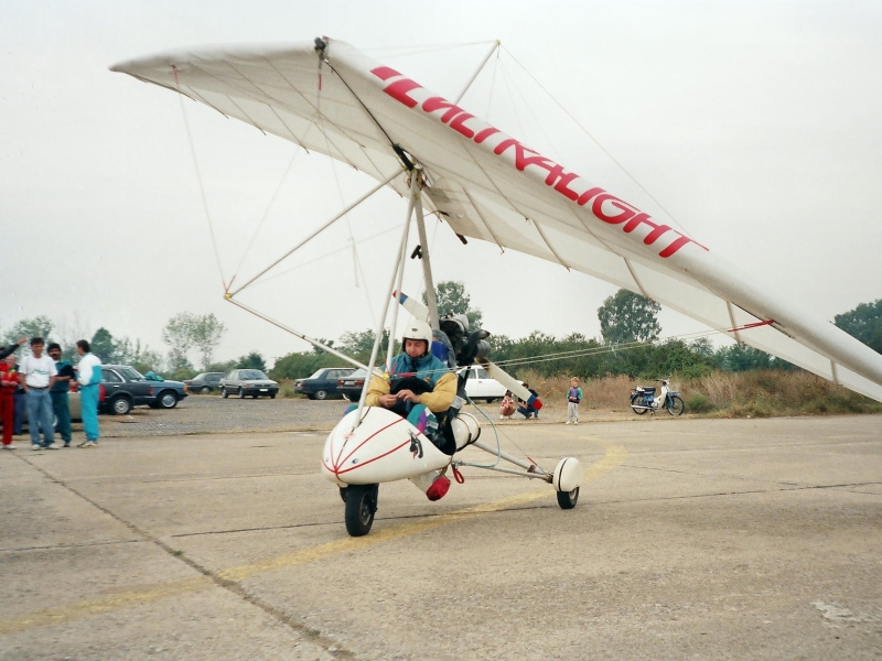 Το 1987 με την ίδια παρέα φίλων και ενώ είχε ήδη εγγραφεί στην Αερολέσχη Αγρινίου, ξεκίνησε μαθήματα πτήσης με Αιωρόπτερο (Βουνίσιο Αετό). Ωστόσο ένα μικρό ατύχημα στην προσγείωση δεν του επέτρεψε να συνεχίσει την εκπαίδευση. Η ανάπτυξη όμως του Αλεξιπτώτου Πλαγιάς ξαναέφερε πάλι στο προσκήνιο την επιθυμία για πτήση. Αυτό είχε σαν αποτέλεσμα το 1990 να συσταθεί μια μικρή ομάδα μαθητών για εκπαίδευση σε πτήση με Αλεξίπτωτο πλαγιάς. Μετά από πολλές ώρες εκπαίδευσης, επιτεύχθη τελικά η πρώτη πτήση με Αλεξίπτωτο Πλαγιάς στο Σανταμέρι Αχαίας με ενα Αλεξίπτωτο BLUE UP στις 9/9/90. Έκτοτε πραγματοποιήθηκαν πολλές πτήσεις από τα μέλη της ομάδας και μετά ή εντυπωσιακή για την εποχή εκδήλωση τον Νοέμβριο του 1990 στην περιοχή της Παλαιοκαρυάς Τριχωνίδος. Εκεί πιλότοι από όλη την Ελλάδα ήρθαν και πέταξαν στους χώρους πάνω από την λίμνη Τριχωνίδα, απολαμβάνοντας την μοναδική ομορφιά του τοπίου. Η αρχή για ελεύθερη πτήση με Αλεξίπτωτο Πλαγιάς έγινε και ή Αερολέσχη Αγρινίου σήμερα έχει ένα πολύ δραστήριο Τμήμα Αλεξιπτώτου πλαγιάς το οποίο δεσπόζει πανελλαδικώς.